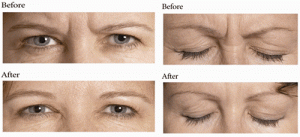 Areas that can be treated are Frown lines which are normally vertical lines that appear between the eye brows. Forehead lines, normally appear horizontally across the forehead. Crow’s feet lines, which appear around the eyes.